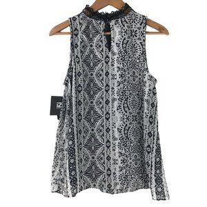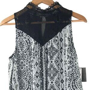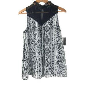 NWT iZ Byer Womens M Black Lace Blouse Aztec Tank Top Sleeveless Floral Casual