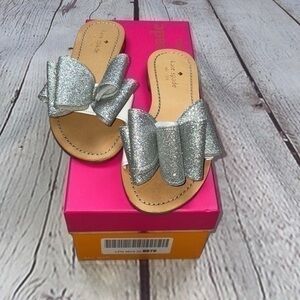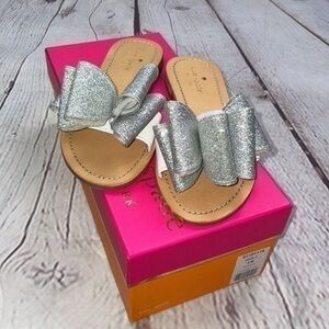 New in box Kate Spade silver sparkle bow slides