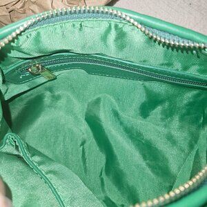 You may have seen the costly Italian original of this style, but here is the vivid, fabulous vegan "Brigitte" interpretation from Melie Bianco, new with tags,. The handle is knotted, and the hobo style is accommodating of a lot of items, or a little. Length 15 inches, height 10 inches, width 4 inches, handle drop about 9 inches. Matching emerald green fabric lined with inner pockets, one zippered. From a smoke-free, dog-loving home.