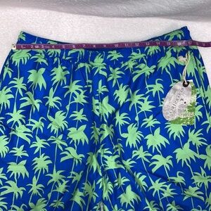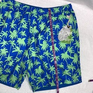 NWT pfsf reversible swim trunks side pockets blue on one side blue with green palm trees on the other elastic waist working drawstring Xl