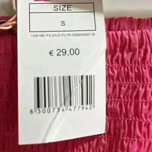 Beautiful Barbie pink top purchased in Italy US size small hundred percent cotton smocked top with adorable offset sleeves with bottom ruffle detail!