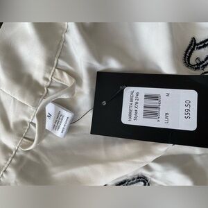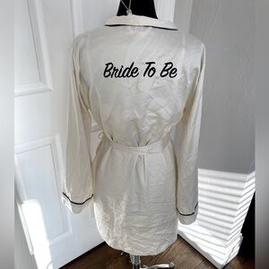 NWT ivory Fredericks of Hollywood “Bride to be” robe with black piping