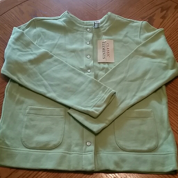 NWT. Classic Elements from Sears. It's a brighter green than the pics show. Women's small 6/8. Length is 23.5". Bust is 20". Sweatshirt feel. Snap closure.