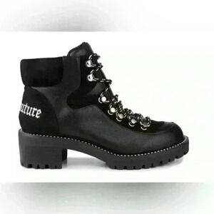 NWT juicy couture black pebbled faux leather lug boots. 7.5