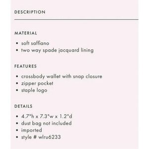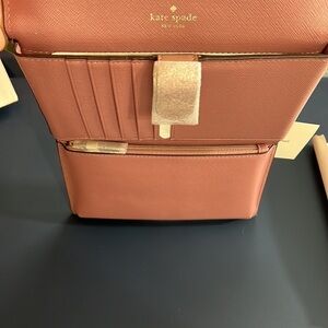 New with tag still in its original packaging kate spade cross body wallet bag, tons of pockets and storage, perfect for a day or not out in the color dusty peony with gold hardware