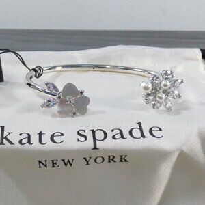 NWT kate spade new york Precious Pansy Flex Cuff, Cream/Silver, One Size