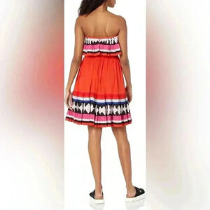 Kate Spade New York Geometric Strapless Pleated Knee Length Dress Sz 4 Red White