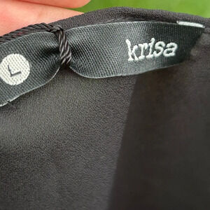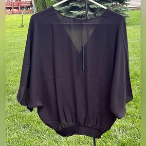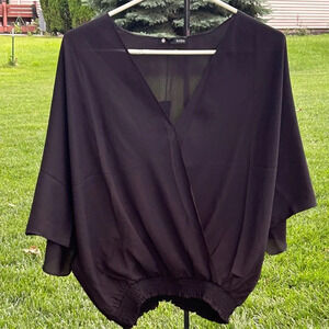 NWT krisa black smocked waist surplice faux wrap front top size L