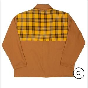 NWT la destresse patch pocket jacket, plaid and solid material mix large