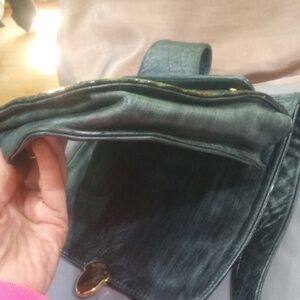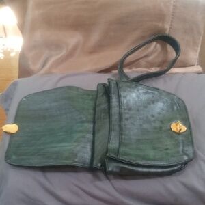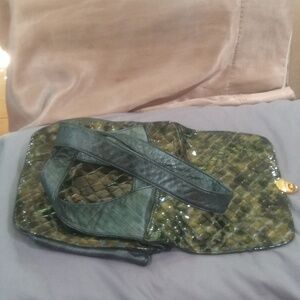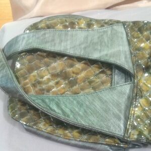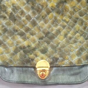 NWT leather crossbody bag measures 9x9 and handle drop 19. Wide leather strap. plenty of internal and external zips. New no wear. beautiful bluish green bag!! Sold as listed in pics. No tags not sure, but t this could be python? Either way, it's a beautiful flawless, high quality, leather bag!