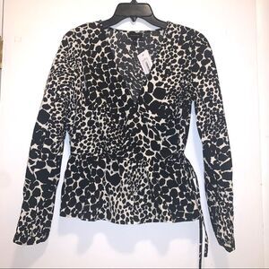 NWT leopard print WHO WHAT WEAR lightweight wrap/side tie blouse, Sz S NEW!🏷
