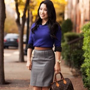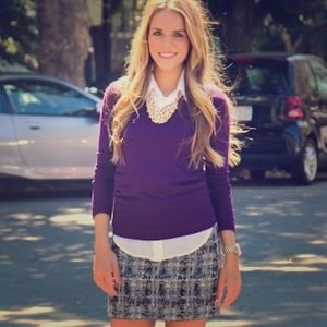 100% Merino Wool but so lightweight (even light enough for summer unless you live in FL). Size S. perfect condition, new with tags. **First three photos are styling suggestions, not actual item for sale. Actual item is pictured in photos 4-8 but due to lightning only photo #4 accurately shows the color. It's more vibrant purple than blue.**