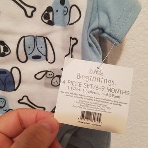 NWT little Beginnings Doggy 4 piece set (1 tshirt, 1 bodysuit, 2pants)