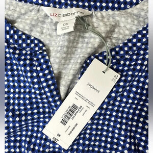 NWT liz claiborne womens bold blue dot top shirt half button size 0x plus