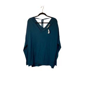 NWT loft women’s green V-neck knit keyhole back detail top size XXL