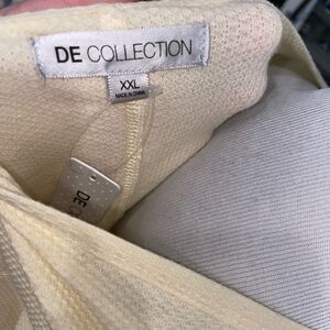 Cream colored shirt. Buttons on front. Knitting on sleeves. Downeast basics