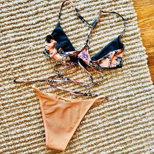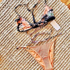 NWT l*space Kristen top, and jay bottom, bitsy, orange floral wrap, bikini set
