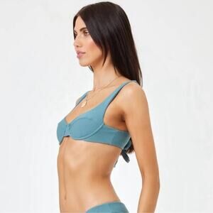 NWT l*space Nikita Bikini Top in Slated Glass Blue sz M Underwire Eco Chic Repreve Ribbed