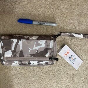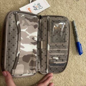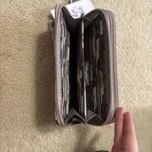 NWT lug Splits XL Wristlet in Taupe measures 7.5”x4.5” closed, 7.5”x8.5” open.