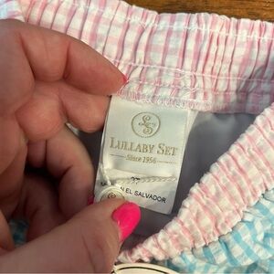 NWT lullaby set pink blue seersucker swim trunks boys size 2T 100% cotton
