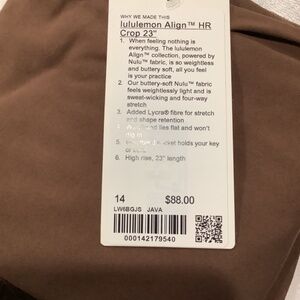 NWT- lululemon Align™ High-Rise Crop 23" JAVA size 14