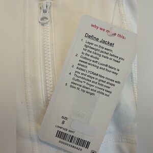 NWT lululemon White Define Jacket in Luon size 8