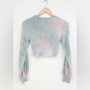 NWT - lulus - Blue Multi Tie-Dye Twist Front Cropped Long Sleeve Top