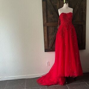 NWT luxurious Lace Long Red Prom Dress Trained With Sweetheart Neckline Gown