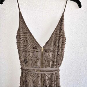 NWT Majorelle brown beaded dress with V-neckline, spaghetti straps, and slit#beadeddress#revolve#weddingguest#holiday #luxury