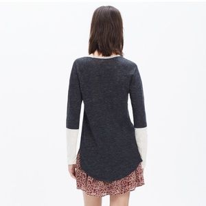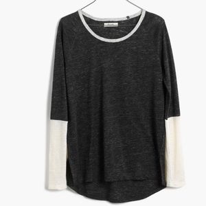 We're obsessed with linen tees that keep their shape while still having a cool drape, like this easy tomboyish colorblock style with raglan sleeves and a wide neckline.