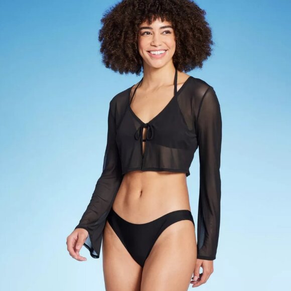 NWT medium Wild Fable Tie-Front Cropped Mesh Cover Up Cardigan