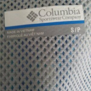 NWT mens Columbia PFG Omni shade button down shirt performance fishing gear S. 100 % polyester , vented back pics 11 and 12 , lots of branding , 2 snap closed chest pockets with a few other pockets that close with hook and loop material pic 16 , the sleeves can be held in a shorter position with a hoop then a piece of material that loops through that hoop and buttons to keep the sleeve up see pic 15.