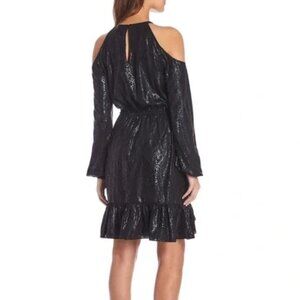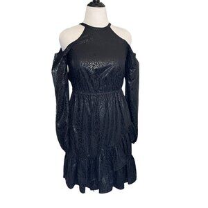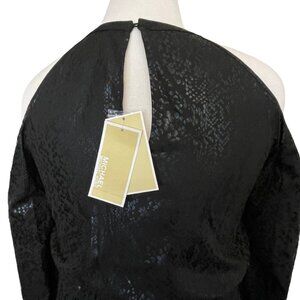New with tags! Retail $165. Michael Kors shiny black on matte black snake print dress with long sleeve that feature cold shoulder styling.