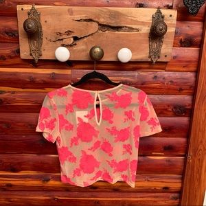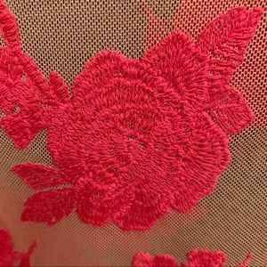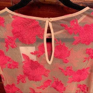 NWT mid length pink embroidery flower sheer lace top. Size S