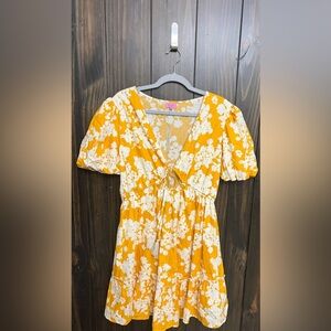 NWT mini puff sleeve floral print yellow and white dress-Size Large