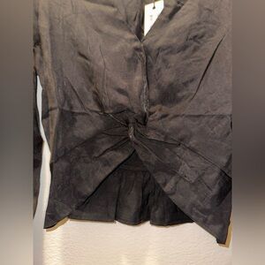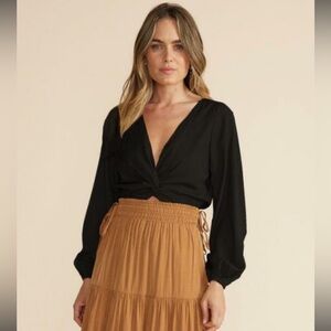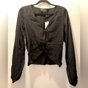 NWT minkpink harper twist blouse black L contemporary silky boho