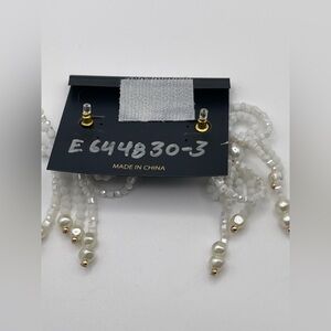 NWT nOir Jewelry White Beaded Pearlescent Bow Earrings with Gold Tone Accents