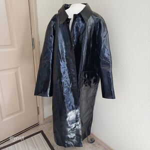 NWT nasty gal Premium Faux Leather Vinyl Mac trench Coat black 14