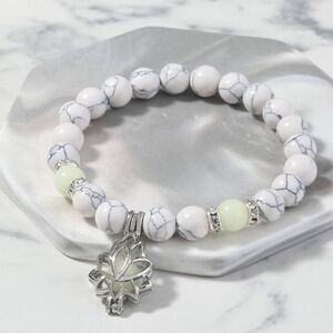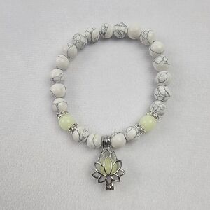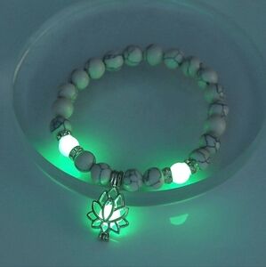 NWT natural stone luminous glow in the dark lotus flower strech charm bracelet