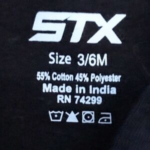 Size 3-6 months Very cute STX Allstar hooded navy baby one piece outfit with yellow highlights.