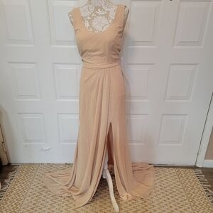 NWT neutral female dress with chiffon cowl back, cups and slit floor length