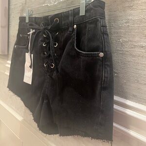 NWT new 29 fits 28 Anthropologie pilcro lace up denim jean shorts black
