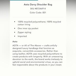 NWT new Anthropologie AOTA darcy faux leather shoulder bag crossbody black purse