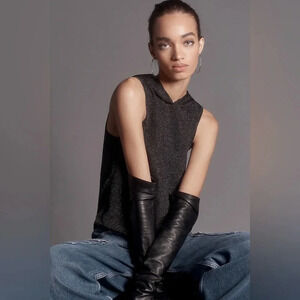 NWT new Anthropologie Pilcro metallic sleeveless hooded sweater top SMALL black