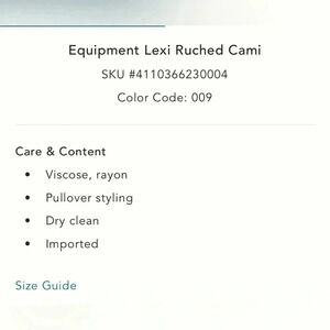 NWT new Anthropologie equipment Lexi ruched cami black medium sleeveless top