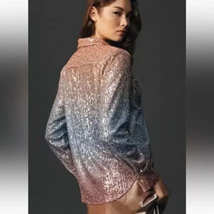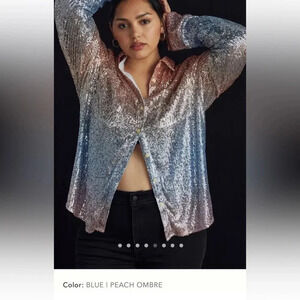 NWT new Anthropologie ombré sequin button down shirt XS blue peach pastel