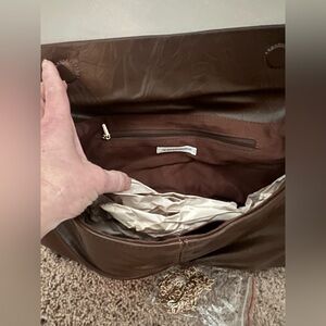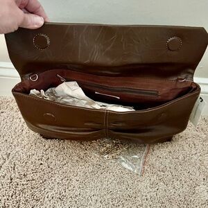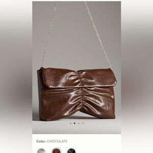 NWT new Anthropologie scrunched envelope clutch faux leather crossbody brown bag