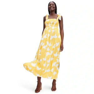 NWT new DVF target yellow dress smocked tie strap ginkgo long dress large new