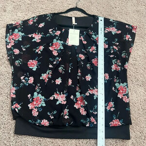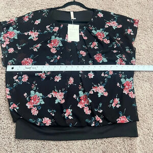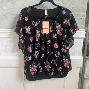 NWT new JINKESI large floral Batwing Short Sleeve Chiffon Top T-Shirt Blouse