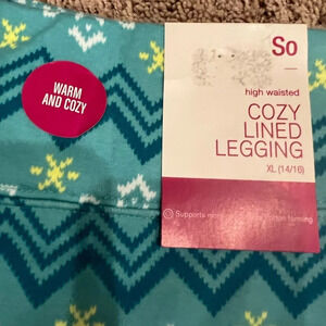 3. Xl 14 / 16 Blue green pattern cozy lined leggings. High waisted.